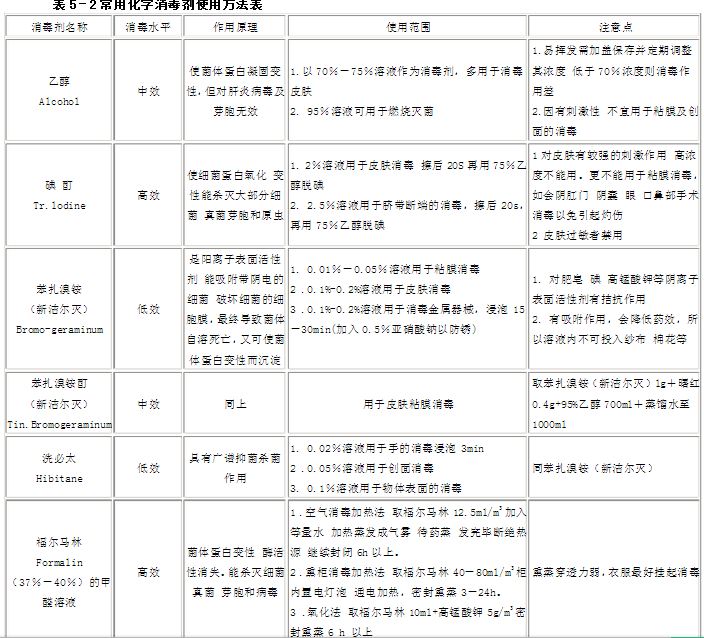 此外,尚可應(yīng)用甲醛或過氧乙酸等進行熏蒸滅菌(詳見表5-2)。
